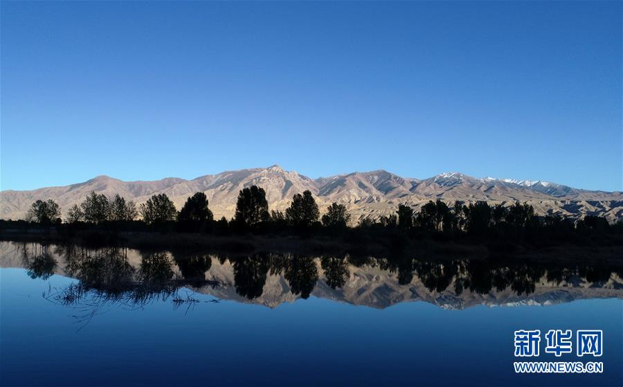 在青海貴德,千姿湖景區(qū)內(nèi)群山與湖水相映成畫(4月16日無人機(jī)拍攝)。地處黃河上游河段的青海省海南藏族自治州貴德縣是黃土高原向青藏高原的過渡地帶,黃河水流經(jīng)于此,大河兩岸壯美雄渾,碧水丹山相映成畫,有著“天下黃河貴德清”的美譽(yù)。新華社記者 張宏祥 攝