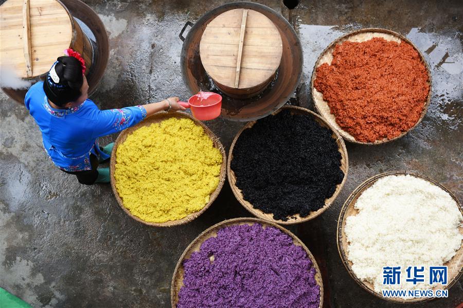 苗族姑娘趕制“姊妹飯”