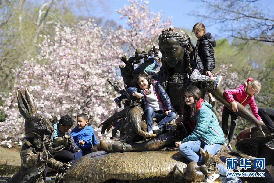 4月16日,孩子們在美國紐約中央公園游玩。 新華社記者 王迎 攝