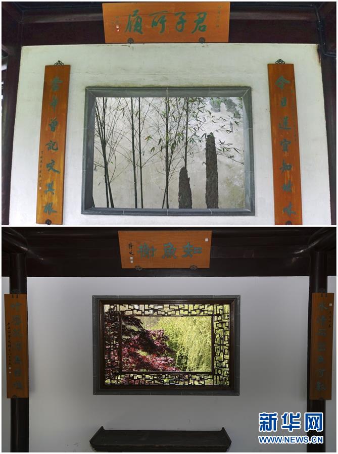 這張拼版照片展示的是:上圖,2019年4月2日拍攝的中國(guó)蘇州留園一景(新華社記者杜涓涓攝);下圖,2017年4月28日拍攝的美國(guó)紐約寄興園一景(新華社記者王迎攝)。