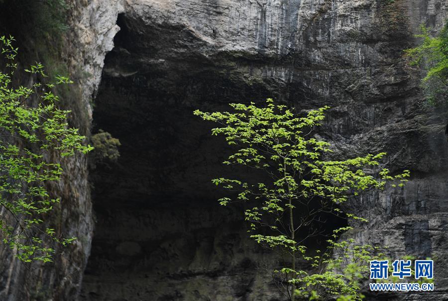 地洞河天坑的巖洞(4月22日攝)。位于陜西省漢中市寧強(qiáng)縣的地洞河天坑,是禪家?guī)r天坑群中規(guī)模最大的一處天坑,坑內(nèi)分布有石鐘乳、石筍,具有極高的地質(zhì)研究價(jià)值。 新華社記者 張博文 攝
