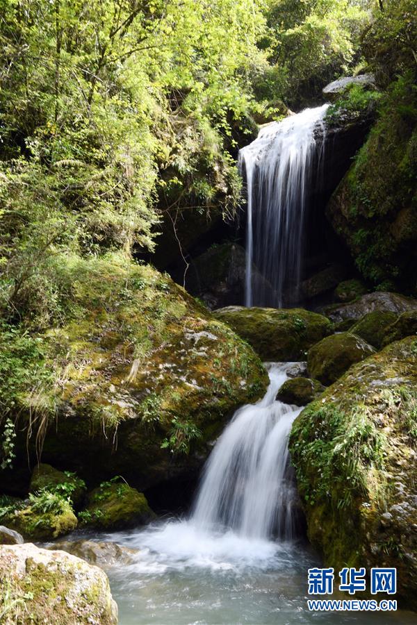 地洞河天坑底部的一處瀑布(4月22日攝)。位于陜西省漢中市寧強(qiáng)縣的地洞河天坑,是禪家?guī)r天坑群中規(guī)模最大的一處天坑,坑內(nèi)分布有石鐘乳、石筍,具有極高的地質(zhì)研究?jī)r(jià)值。 新華社記者 張博文 攝