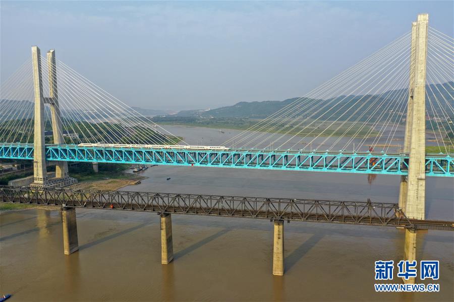 一列高鐵列車從新白沙沱長江特大橋上駛過(4月23日無人機(jī)拍攝)。 4月23日下午5點(diǎn)40分,隨著重慶白沙沱長江大橋通行的最后一列客運(yùn)列車順利通過,這座“服役”了59年的重慶首座長江大橋進(jìn)入“退役”倒計(jì)時(shí)。4月24日后,所有列車將改線經(jīng)距白沙沱長江大橋約100米的新白沙沱長江特大橋通行,新橋“接力”老橋,運(yùn)輸能力將得到大幅提升。 白沙沱長江大橋于1958年開工,1960年通過首趟列車,是繼武漢長江大橋之后的第二座長江大橋。 新華社記者 劉潺 攝