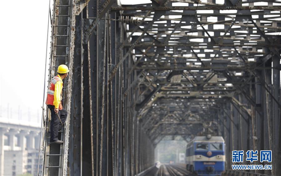 中國鐵路成都局有限公司重慶工務段的巡檢班組在白沙沱長江大橋上等待機車通過后繼續(xù)作業(yè)(4月23日攝)。 4月23日下午5點40分,隨著重慶白沙沱長江大橋通行的最后一列客運列車順利通過,這座“服役”了59年的重慶首座長江大橋進入“退役”倒計時。4月24日后,所有列車將改線經距白沙沱長江大橋約100米的新白沙沱長江特大橋通行,新橋“接力”老橋,運輸能力將得到大幅提升。 白沙沱長江大橋于1958年開工,1960年通過首趟列車,是繼武漢長江大橋之后的第二座長江大橋。 新華社記者 劉潺 攝