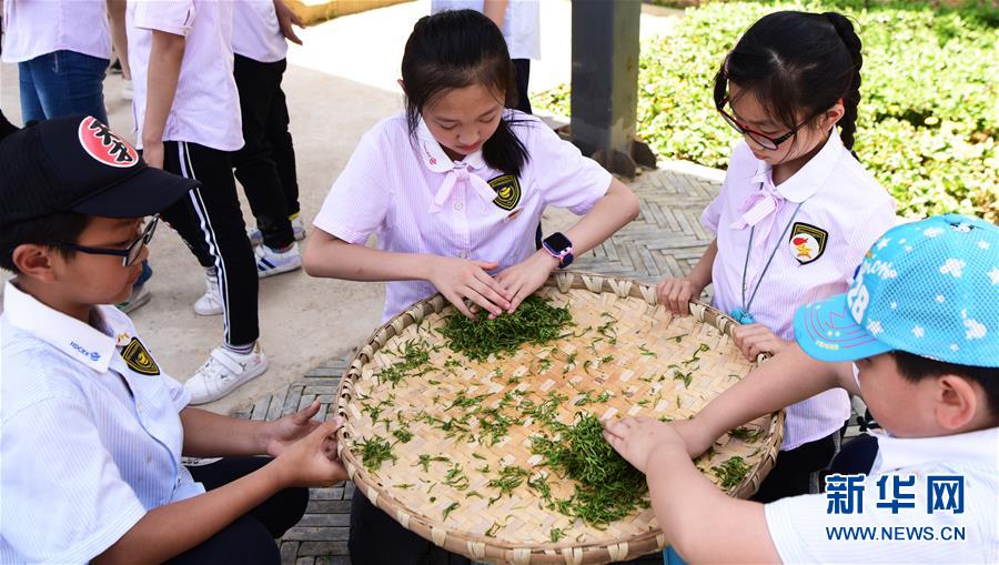 4月25日,小學生在定心茶園體驗春茶采摘。當日,來自重慶市巴南區(qū)的300余名小學生來到位于巴南白象山的定心茶園,體驗茶葉采摘、制作,學習茶文化禮儀。近年來,重慶市巴南區(qū)積極發(fā)展茶產(chǎn)業(yè),推動“茶旅融合”“茶教融合”發(fā)展,取得了良好的經(jīng)濟和社會效益。 新華社記者 王全超 攝