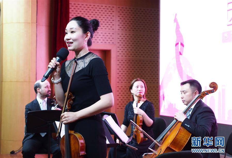 4月25日,上海交響樂團(tuán)的中提琴手巴桐在演奏前介紹曲目。 當(dāng)日,第一場(chǎng)“全城交響·上交為你而來”音樂會(huì)在復(fù)旦大學(xué)附屬腫瘤醫(yī)院報(bào)告廳奏響,為患者及醫(yī)護(hù)人員獻(xiàn)上一場(chǎng)專屬音樂會(huì)?!叭墙豁憽ど辖粸槟愣鴣怼笔巧虾=豁憳穲F(tuán)2019年向全上海的機(jī)構(gòu)及個(gè)人開放的公益演出項(xiàng)目。 新華社記者 任瓏 攝