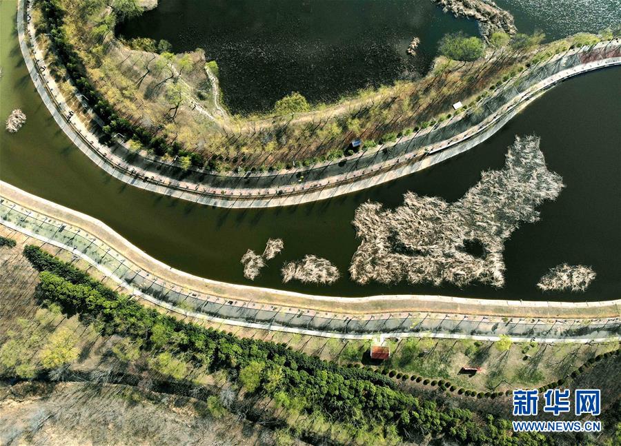 這是位于河南省平頂山市由采煤塌陷區(qū)修復(fù)改造的白鷺洲國(guó)家城市濕地公園一景(3月12日無人機(jī)拍攝)。 新華社記者 李安 攝