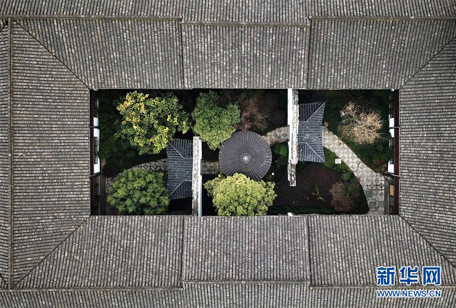 這是浙江省桐鄉(xiāng)市烏鎮(zhèn)景區(qū)的一處庭院(2月25日無人機(jī)拍攝)。 新華社記者 翁忻旸 攝