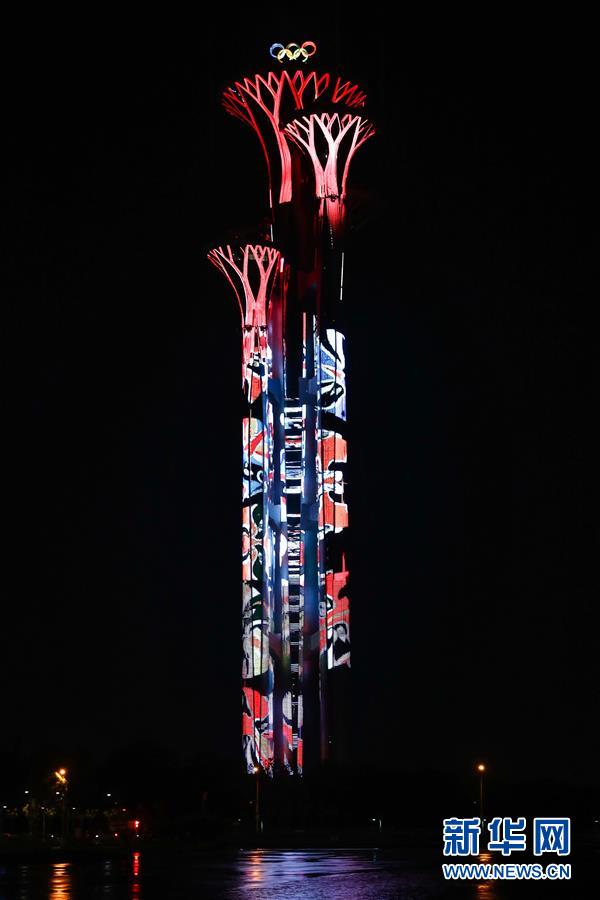 4月26日,北京中軸線上演“空間光影秀”。 新華社記者 張玉薇 攝