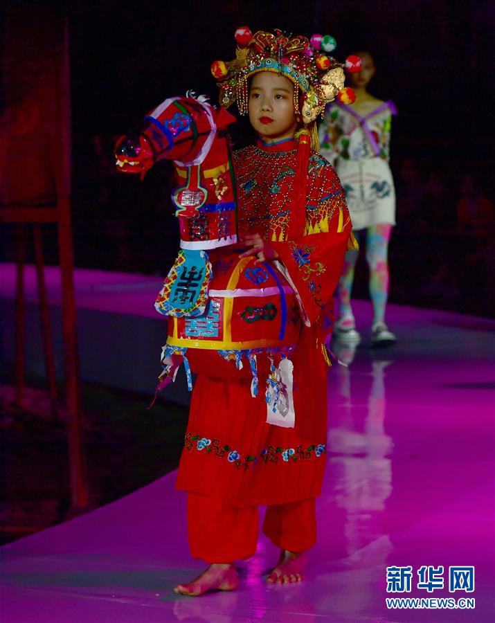 4月27日,小模特身穿民族服飾展示土樓當(dāng)?shù)氐姆俏镔|(zhì)文化遺產(chǎn)竹馬戲。 當(dāng)日,土樓光語國際時(shí)尚大秀在福建省南靖縣的土樓裕昌樓內(nèi)舉行。這場融匯文化、時(shí)尚與旅游元素的大秀,通過傳統(tǒng)與時(shí)尚的有機(jī)融合,展現(xiàn)南靖土樓及文化的魅力和風(fēng)采。 新華社記者魏培全攝