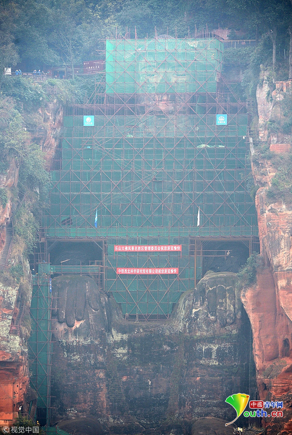 樂山大佛本體已全遮蔽 胸腹開裂病害原因基本查明