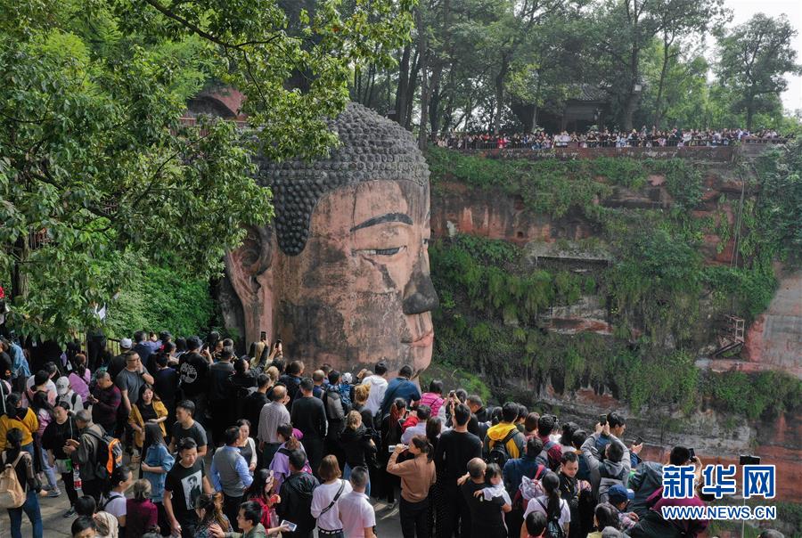 當(dāng)日是“十一”長假第四天,樂山大佛景區(qū)接待游客4.38萬人次,接近景區(qū)日最大承載量4.5萬人次的接待能力。