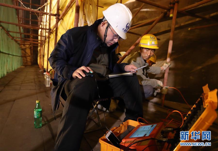 中鐵西北科學(xué)研究院有限公司文保中心的工程師孫博(左)在檢測探頭的數(shù)據(jù)穩(wěn)定性(3月18日攝)。新華社記者 江宏景 攝