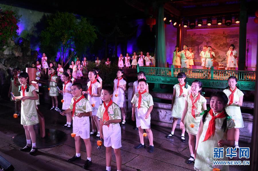 5月5日,小學生在福州三坊七巷的水榭戲臺表演。 福州三坊七巷為國內現存規(guī)模較大、保護較為完整的歷史文化名街區(qū),是中國十大歷史文化名街之一。位于三坊七巷內的水榭戲臺經常舉辦傳統(tǒng)文化演出吸引游客慕名前來觀賞。 新華社記者 林善傳 攝