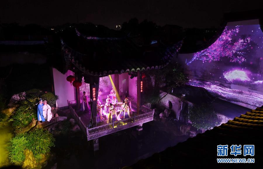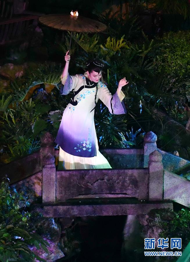 5月5日,演員在福州三坊七巷的水榭戲臺(tái)表演歌舞《煙雨坊巷》。 福州三坊七巷為國(guó)內(nèi)現(xiàn)存規(guī)模較大、保護(hù)較為完整的歷史文化名街區(qū),是中國(guó)十大歷史文化名街之一。位于三坊七巷內(nèi)的水榭戲臺(tái)經(jīng)常舉辦傳統(tǒng)文化演出吸引游客慕名前來觀賞。 新華社記者 林善傳 攝