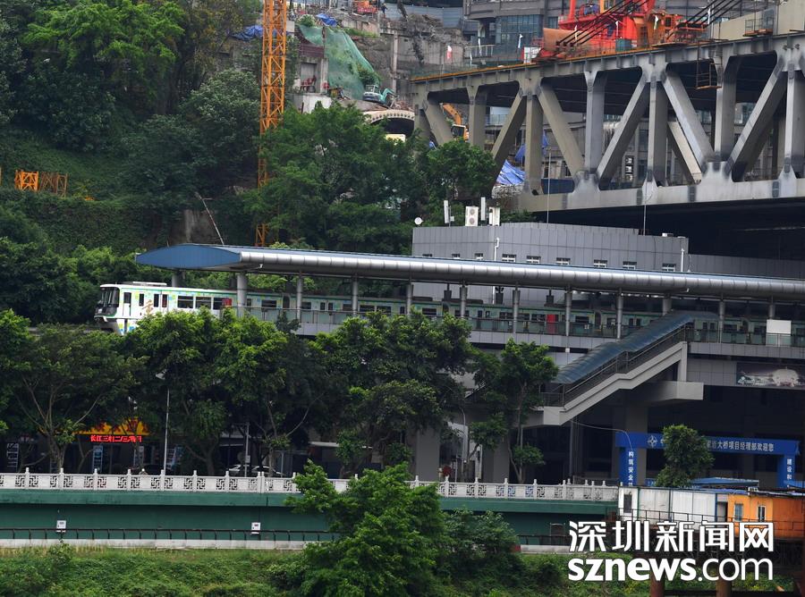 主橋鋼桁梁共44個節(jié)段,用鋼量約2.4萬噸,高栓63萬套。主橋上部結(jié)構(gòu)采用雙層橋面鋼桁梁形式,上層為雙向6車道及兩側(cè)人行道,下層為雙線城市軌道交通十號線,是國內(nèi)首個把軌道換乘站建在橋面上的公軌兩用橋。而在曾家?guī)r嘉陵江大橋渝中區(qū)橋頭正下方,則是重慶軌道交通二號線的曾家?guī)r站,該線路也是重慶最早投入運行的軌道交通線路。