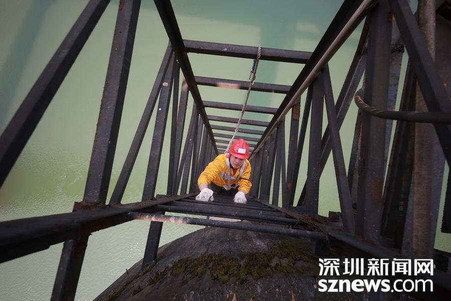 中國(guó)鐵路成都局有限公司重慶工務(wù)段53歲的橋隧工唐金華在白沙沱長(zhǎng)江大橋的鋼架上檢查鋼梁的銹蝕情況(4月23日攝)。 4月23日下午5點(diǎn)40分,隨著重慶白沙沱長(zhǎng)江大橋通行的最后一列客運(yùn)列車順利通過,這座“服役”了59年的重慶首座長(zhǎng)江大橋進(jìn)入“退役”倒計(jì)時(shí)。4月24日后,所有列車將改線經(jīng)距白沙沱長(zhǎng)江大橋約100米的新白沙沱長(zhǎng)江特大橋通行,新橋“接力”老橋,運(yùn)輸能力將得到大幅提升。 白沙沱長(zhǎng)江大橋于1958年開工,1960年通過首趟列車,是繼武漢長(zhǎng)江大橋之后的第二座長(zhǎng)江大橋。 新華社記者 劉潺 攝
