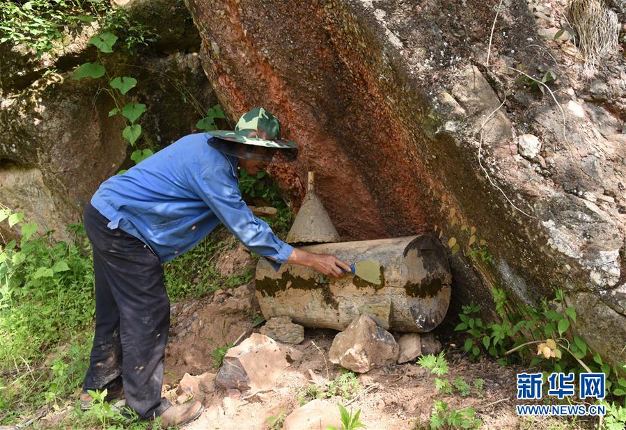 5月10日,在甘肅省隴南市徽縣大河店鎮(zhèn)硬灣村,蜂農(nóng)周仲頤在收蜂。 甘肅省隴南市徽縣大河店鎮(zhèn)硬灣村位于秦巴山區(qū)深處,2017年,在當(dāng)?shù)卣姆龀窒?,龍崖老巢蜜養(yǎng)殖農(nóng)民專業(yè)合作社成立,蜂農(nóng)們將傳統(tǒng)養(yǎng)蜂技藝和現(xiàn)代加工方式相結(jié)合,并通過(guò)電商等渠道打開(kāi)銷路,有效帶動(dòng)了當(dāng)?shù)刎毨Т迕衩撠氈赂弧D壳罢麄€(gè)合作社共有蜂箱2000余個(gè),每箱每年可帶來(lái)三四千元的收入。 新華社記者 馬寧 攝
