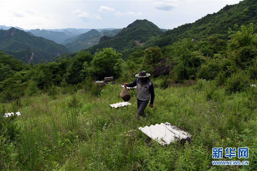5月10日,在甘肅省隴南市徽縣大河店鎮(zhèn)硬灣村,蜂農(nóng)周仲頤在收蜂。 甘肅省隴南市徽縣大河店鎮(zhèn)硬灣村位于秦巴山區(qū)深處,2017年,在當(dāng)?shù)卣姆龀窒?,龍崖老巢蜜養(yǎng)殖農(nóng)民專業(yè)合作社成立,蜂農(nóng)們將傳統(tǒng)養(yǎng)蜂技藝和現(xiàn)代加工方式相結(jié)合,并通過(guò)電商等渠道打開(kāi)銷路,有效帶動(dòng)了當(dāng)?shù)刎毨Т迕衩撠氈赂?。目前整個(gè)合作社共有蜂箱2000余個(gè),每箱每年可帶來(lái)三四千元的收入。 新華社記者 馬寧 攝