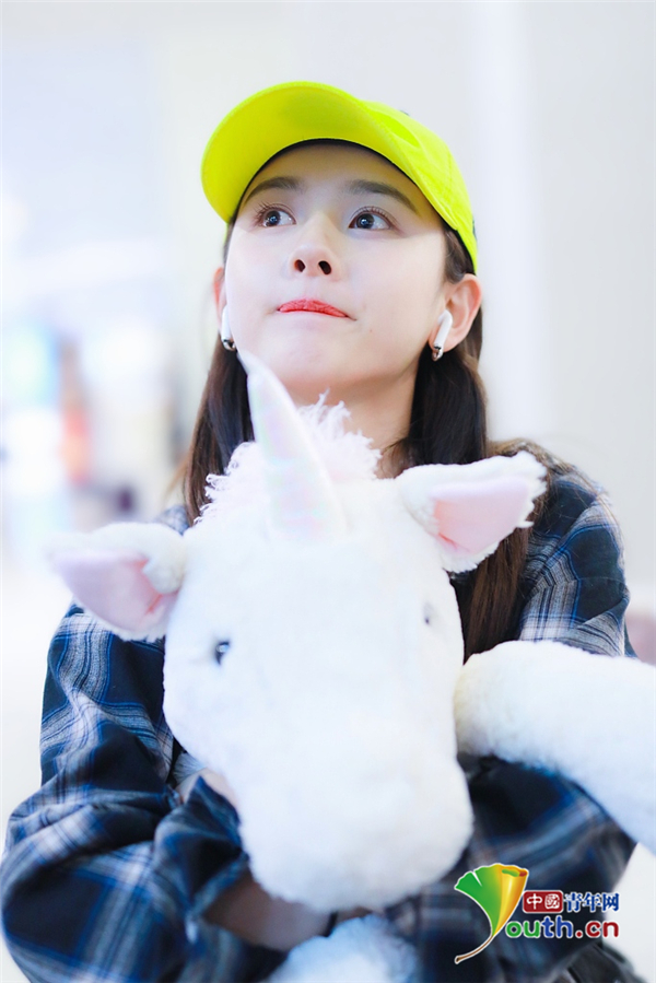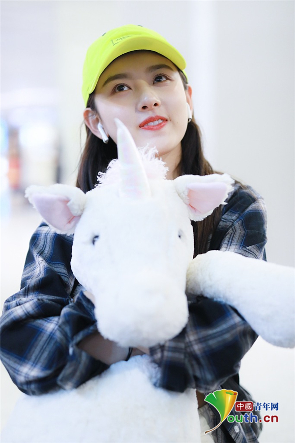 2019年5月12日,北京,宋祖兒現(xiàn)身機(jī)場。她穿格子襯衫戴小黃帽揮手大步走,元?dú)馍倥盍M滿,抱玩偶變身獨(dú)角獸女孩童趣十足超可愛。