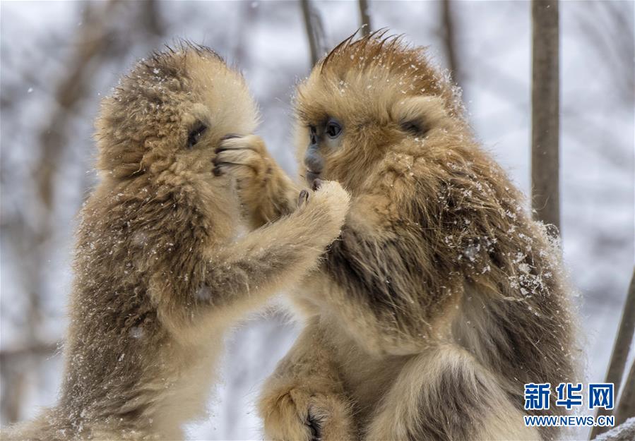 在神農(nóng)架?chē)?guó)家公園大龍?zhí)杜臄z的金絲猴(2017年1月10日攝)。 新華社記者 杜華舉 攝