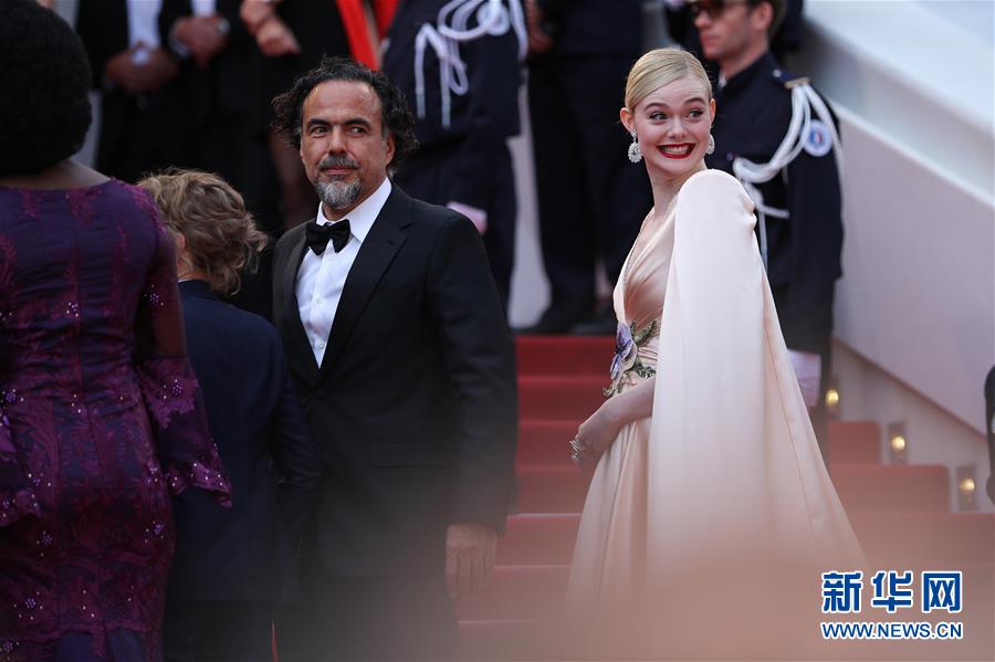 5月14日,在法國南部城市戛納,戛納電影節(jié)主競賽單元評委墨西哥導演亞歷杭德羅·伊尼亞里圖(左)和美國演員埃勒·范寧亮相開幕式紅毯。 5月14日,第72屆戛納電影節(jié)在戛納開幕。本屆電影節(jié)將持續(xù)至5月25日。 新華社記者 張鋮 攝