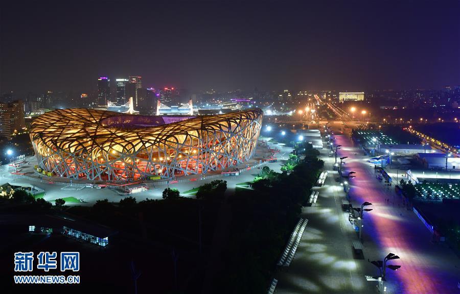 “鳥巢”燈光璀璨(5月14日攝)。 當(dāng)晚,一場(chǎng)“空間光影秀”在北京上演。 新華社記者 李賀 攝