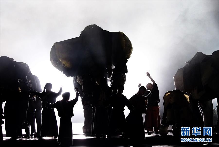 5月15日在上海美琪大戲院拍攝的新版大型人偶舞臺劇《最后一頭戰(zhàn)象》劇照。 當日,作為第12屆中國藝術(shù)節(jié)的參演劇目,大型人偶舞臺劇《最后一頭戰(zhàn)象》在經(jīng)過4次硬件技術(shù)升級和故事修改后亮相上海美琪大戲院。 新華社記者 任瓏 攝