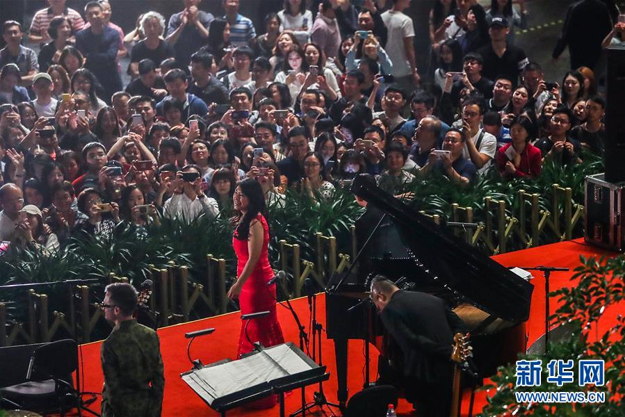 5月19日凌晨,觀眾在國家大劇院公共空間欣賞小野麗莎“午夜玫瑰”爵士樂專場音樂會。 5月18日晚,作為亞洲文化展演活動的演出之一,著名爵士歌手小野麗莎攜樂團首次登臺國家大劇院,亮相“午夜玫瑰”爵士樂專場音樂會。 新華社記者 張玉薇 攝