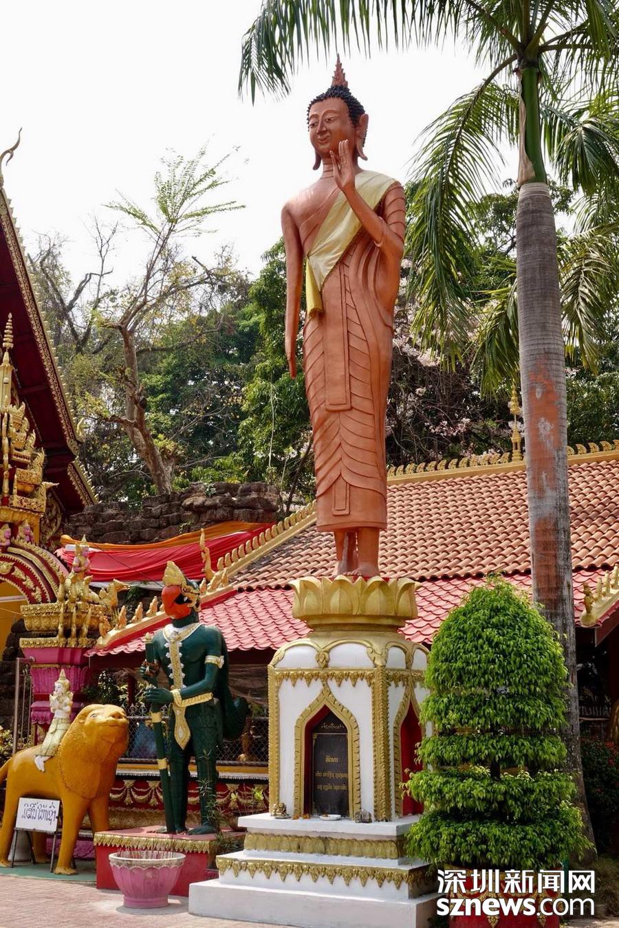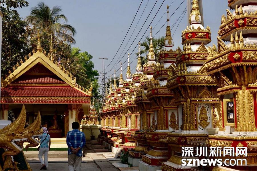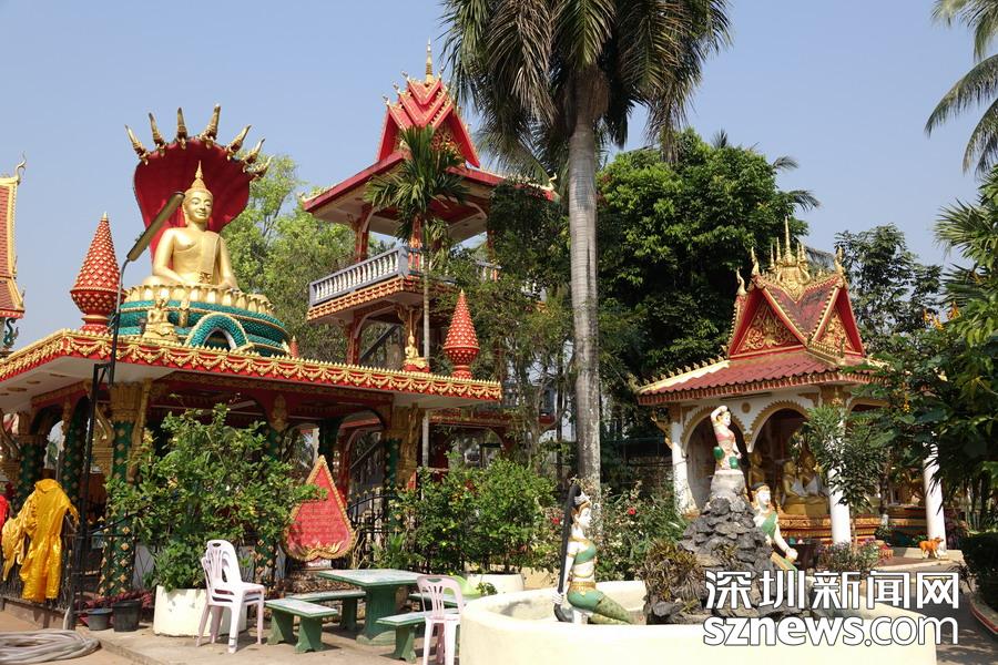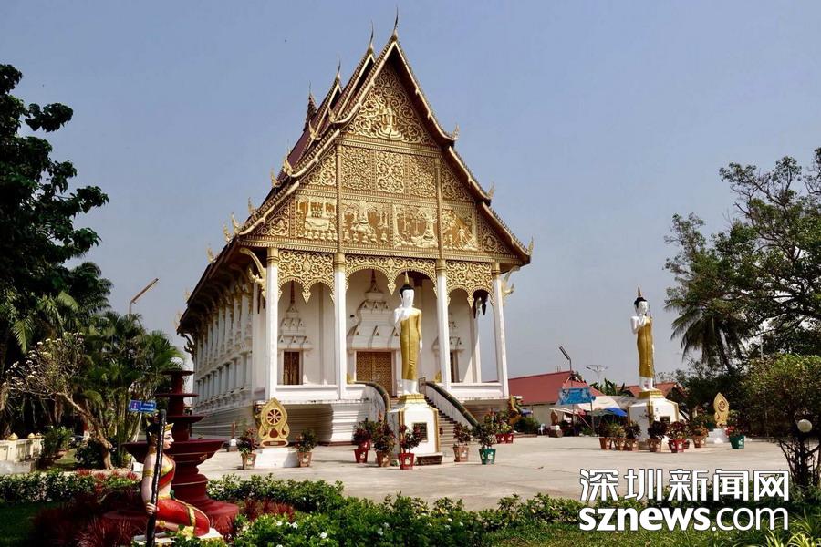 西蒙寺是萬象香火最旺盛的一個寺廟,又稱神城寺,每天有很多當(dāng)?shù)厝思坝慰蛠磉@里祈福,尤其受泰國游客鐘愛。李仁奇 攝