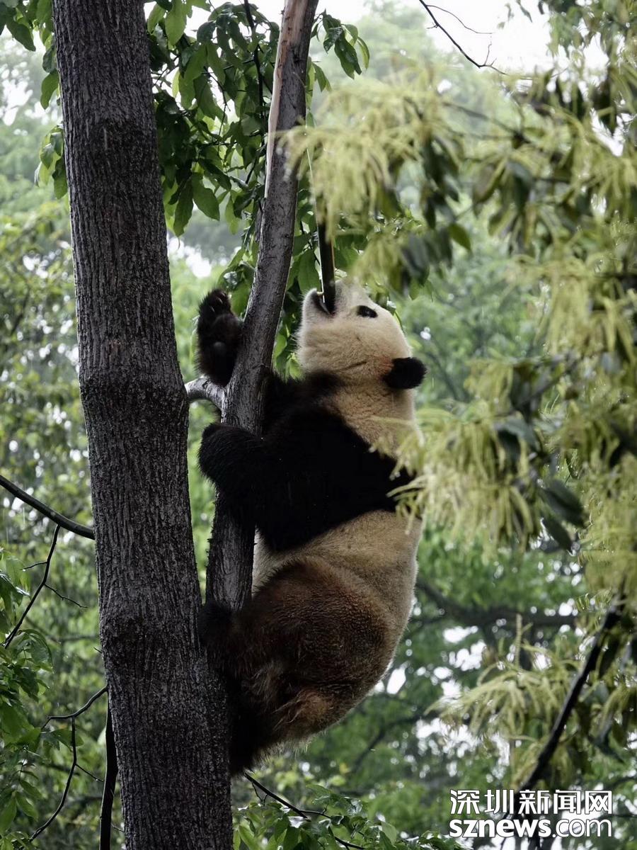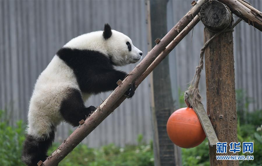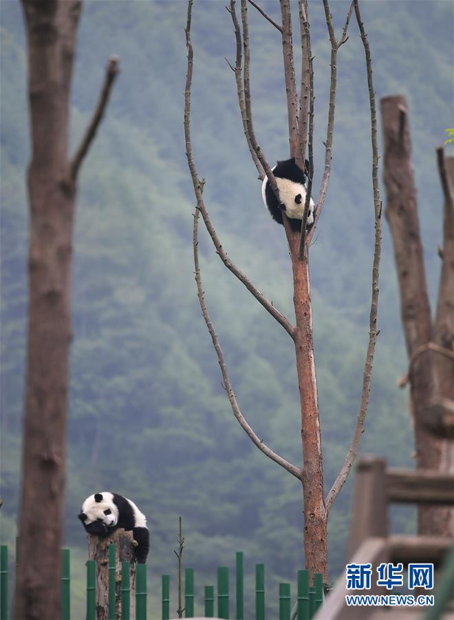 5月26日在中國(guó)大熊貓保護(hù)研究中心臥龍神樹坪基地的“熊貓幼兒園”內(nèi)拍攝的大熊貓。