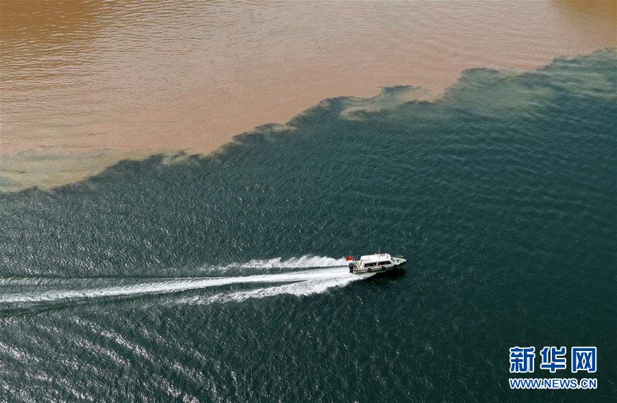 6月2日,在甘肅省臨夏回族自治州永靖縣劉家峽水庫(kù),一艘快艇在洮河和黃河的匯合水域行駛。