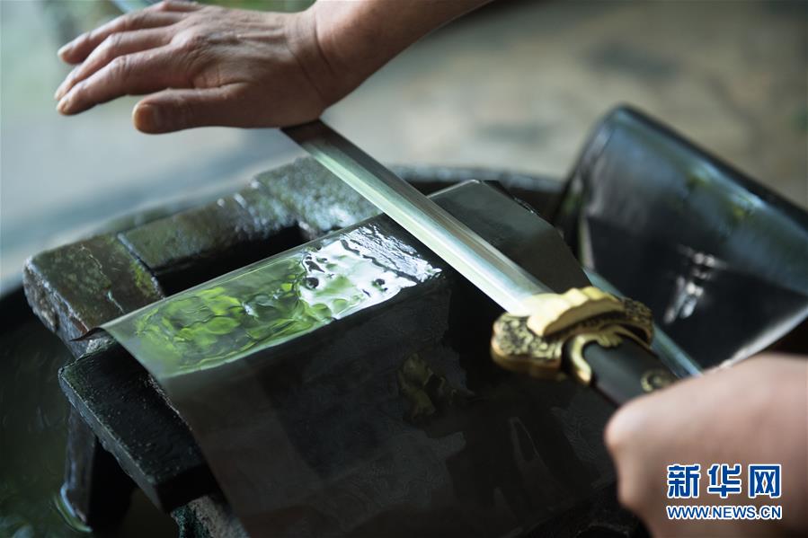 5月21日,“古越劍鋪”磨劍師吳長(zhǎng)友在磨制寶劍。吳長(zhǎng)友是鄭國(guó)榮在國(guó)營(yíng)劍廠的老同事,跟隨鄭鑄劍20余年。 新華社記者 翁忻旸 攝