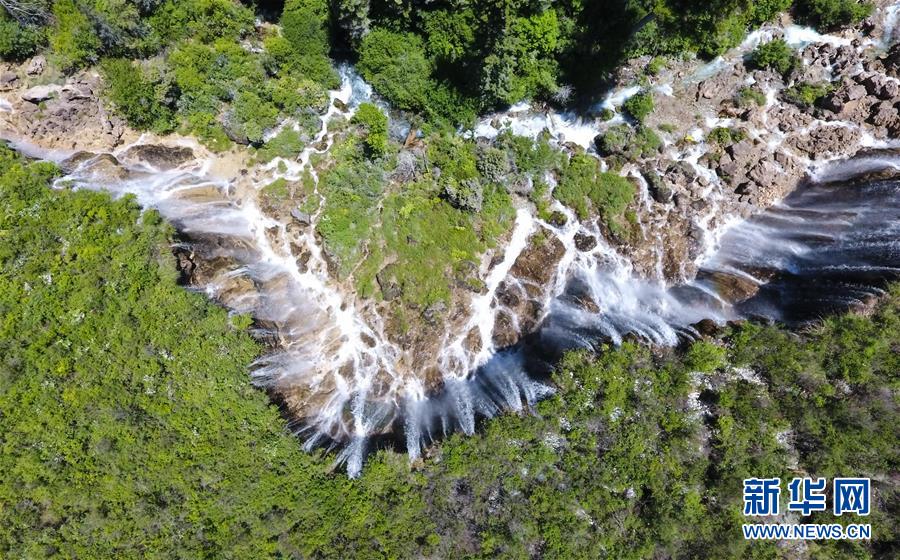 這是九寨溝景區(qū)的諾日朗瀑布景點(6月5日無人機拍攝)。新華社記者薛玉斌攝