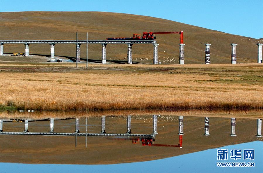 青藏鐵路在架橋施工中(2004年資料照片)。新華社記者覺果攝