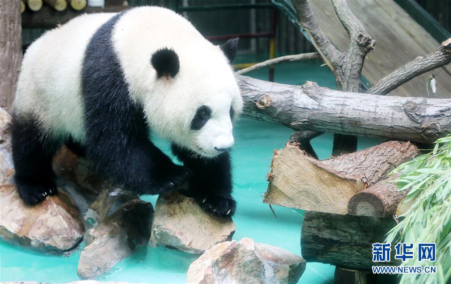 6月18日,大熊貓“星光”走在館內(nèi)水池邊的石頭上。 當日,來自四川的大熊貓兄弟“和風”與“星光”飛抵上海,正式開始了在上海動物園為期三年的生活。為迎接這對“風光兄弟”,上海動物園將原有的大熊貓館擴建并裝修一新,空調(diào)、水池、游樂場以及竹葉儲存間等配置齊全。 新華社記者 方喆 攝