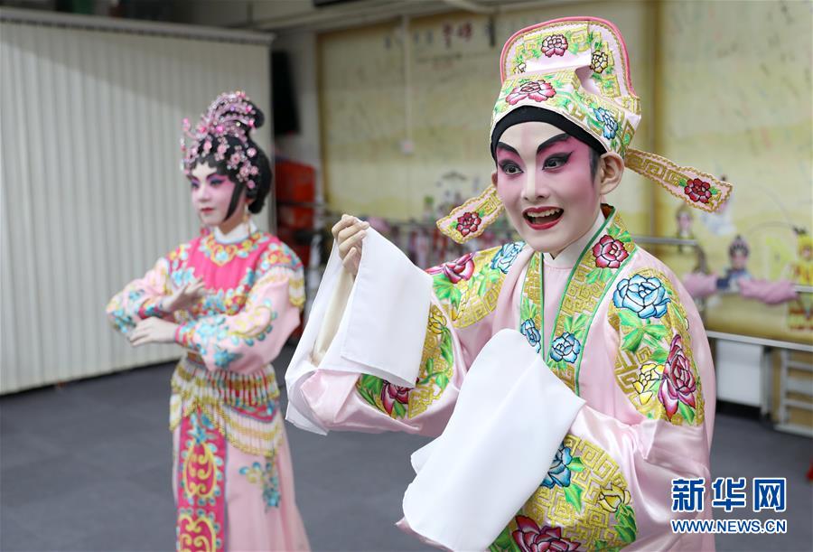 陸瑞徽(左)和利文喆在表演折子戲《艷曲醉周郎》(6月8日攝)。 聲輝粵劇推廣協(xié)會成立于2003年,是香港重要粵劇藝術團體之一,致力于向青少年推廣粵劇。協(xié)會目前有兩個初班,3個中班,一個青少年班?;泟∮址Q“廣東大戲”,表演技藝包括“唱做念打”,即唱功、身段、臺詞、武打,主要流行于廣東、廣西和香港、澳門等地區(qū)。2009年,粵劇被列入聯(lián)合國教科文組織人類非物質文化遺產(chǎn)代表作名錄,今年正逢十周年。 新華社記者 吳曉初 攝