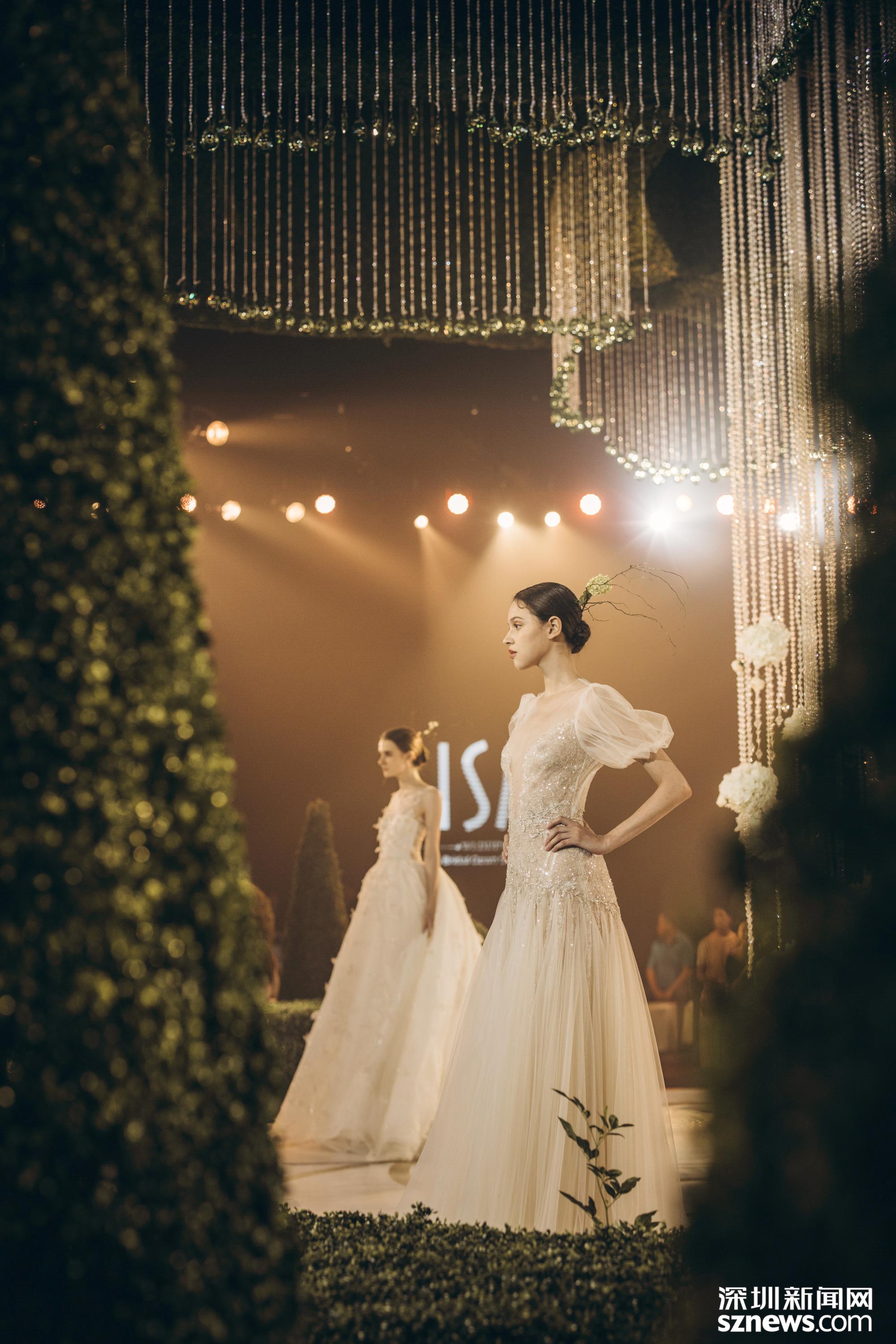 流光溢彩的燈光秀打在婚紗上折射出閃耀星辰,高潮迭起的抽獎(jiǎng)環(huán)節(jié)也讓每位嘉賓欣喜萬分。整場(chǎng)活動(dòng)中,令人激動(dòng)的時(shí)刻就是精彩的婚紗禮服走秀。隨著悠揚(yáng)的音樂旋律,當(dāng)身著ISA衣紗2019新品的模特們悉數(shù)亮相T臺(tái),緩緩行走在花園的秘境之中,極具設(shè)計(jì)感的廓形及工藝細(xì)節(jié)驚艷了在座的所有人,靈動(dòng)仙氣的婚紗設(shè)計(jì)讓人聯(lián)想到秘境花園的浪漫清新,令人回味無窮。
