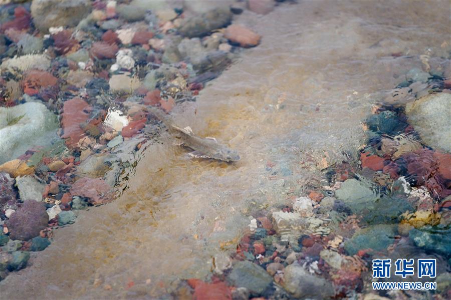 7月6日,在青海省剛察縣沙柳河里,一只湟魚(yú)向上洄游。 新華社記者 吳剛攝