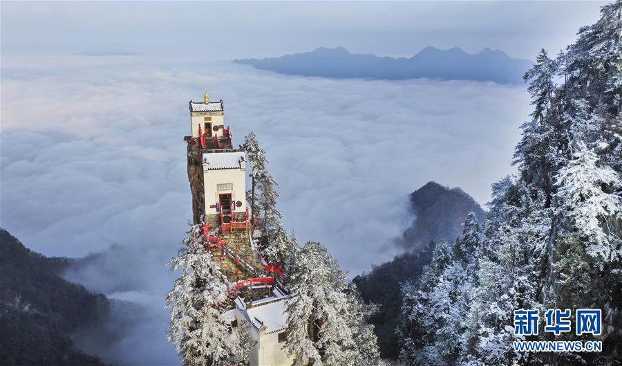 3月3日拍攝的塔云山金頂觀音殿(無人機(jī)拍攝)。 新華社記者陶明攝