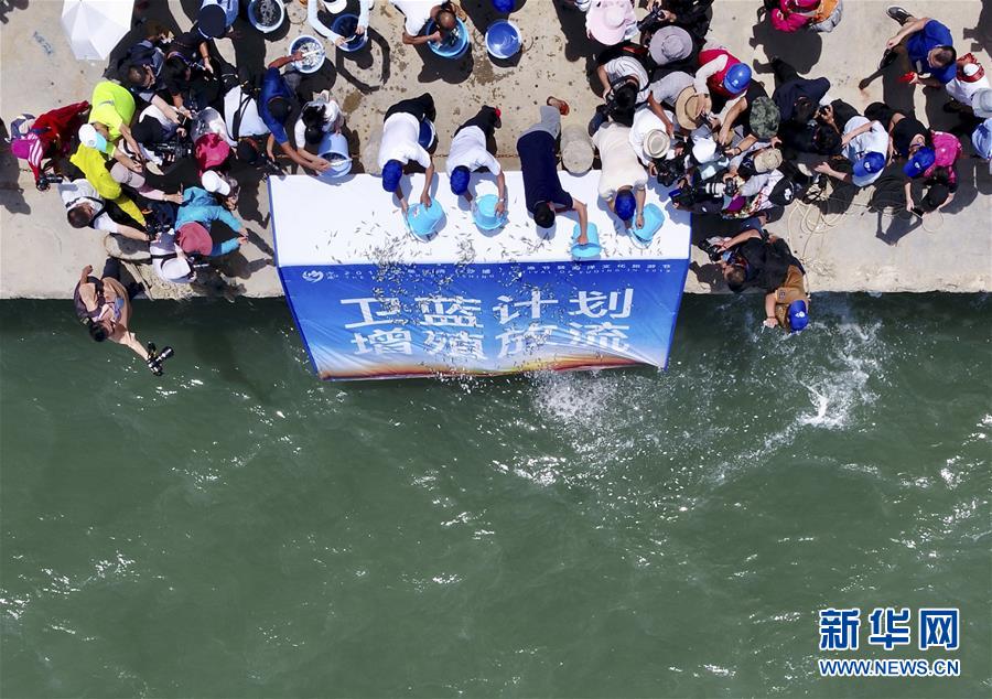 8月3日,首屆福清開漁節(jié)增殖放流活動(dòng)上人們在向大海投放魚苗(無人機(jī)拍攝)。