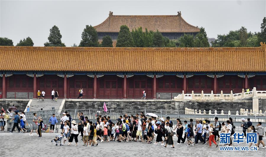 8月3日,游客在故宮參觀。進(jìn)入暑期以來(lái),北京故宮博物院迎來(lái)游覽高峰。故宮博物院采取每日游客限流、熱點(diǎn)景區(qū)導(dǎo)流、供水和醫(yī)療保障等措施,確保游客安全。新華社記者李欣攝
