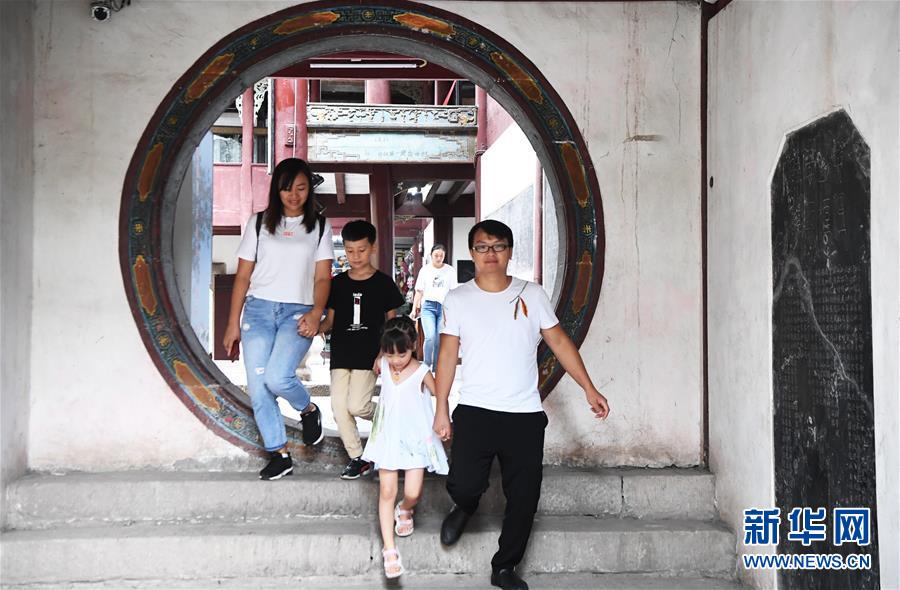 游客在張飛廟游覽(7月31日攝)。云陽縣城搬遷時(shí),原在老城對岸的張飛廟,也一磚一瓦地搬遷到了與云陽新縣城一江之隔的新址。