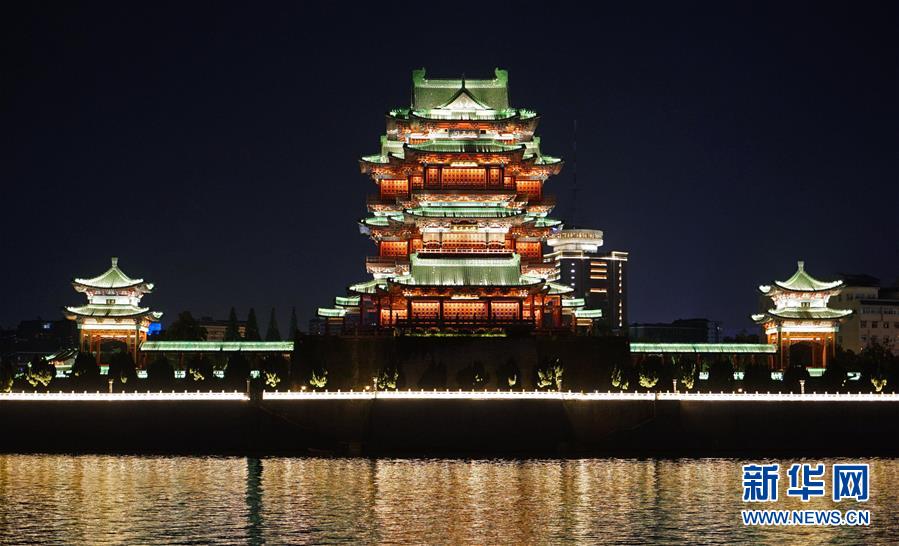 這是江西南昌贛江岸邊滕王閣夜景(8月6日攝)。 新華社記者 萬象 攝