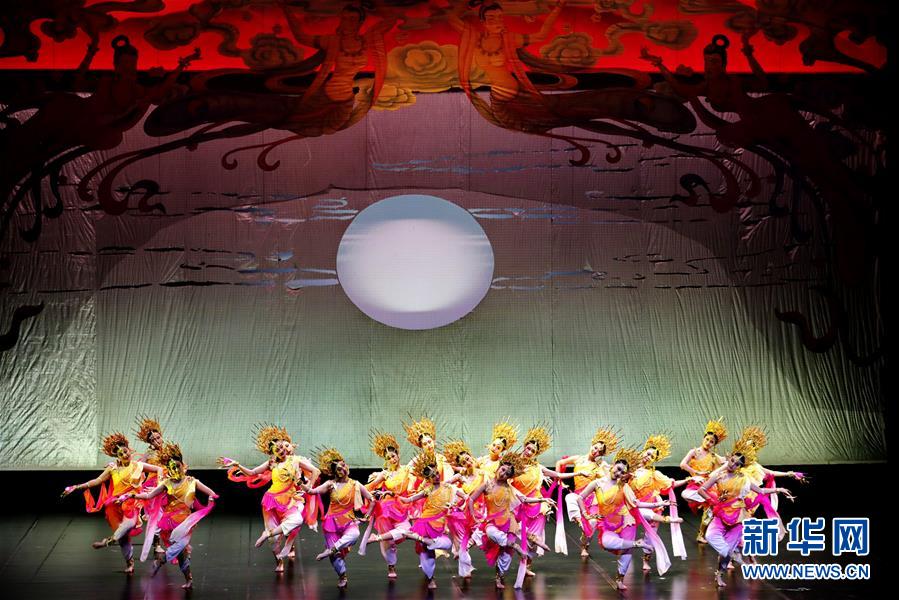 8月7日晚,舞蹈演員們在表演中。 當日,“舞出中國風”慶祝新中國成立70周年公益展演在上海國際舞蹈中心舉行。舞蹈家黃豆豆攜手30位青年舞者進行志愿演出,并與多家藝術(shù)團隊合作,共同呈現(xiàn)了一臺具有濃郁中國風的原創(chuàng)舞專場,為新中國成立70周年獻禮。 新華社記者 劉穎 攝