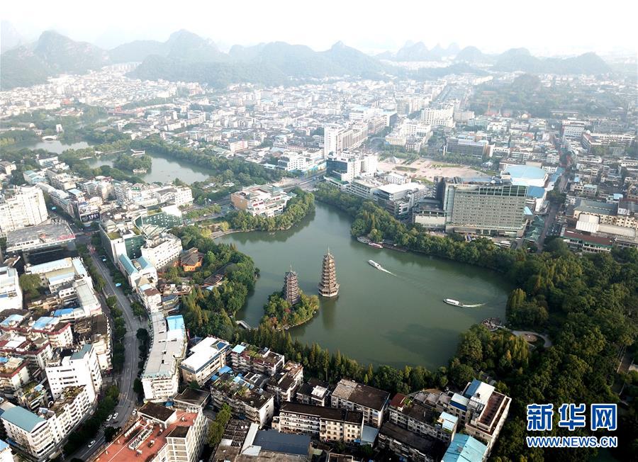 這是廣西桂林市的城市景觀(10月17日無人機拍攝)。 新華社記者 周華 攝