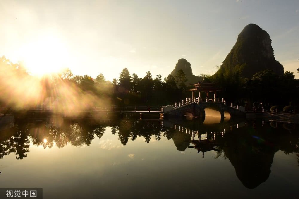 廣西桂林,晨光照映下,山水美景如畫(huà)。
