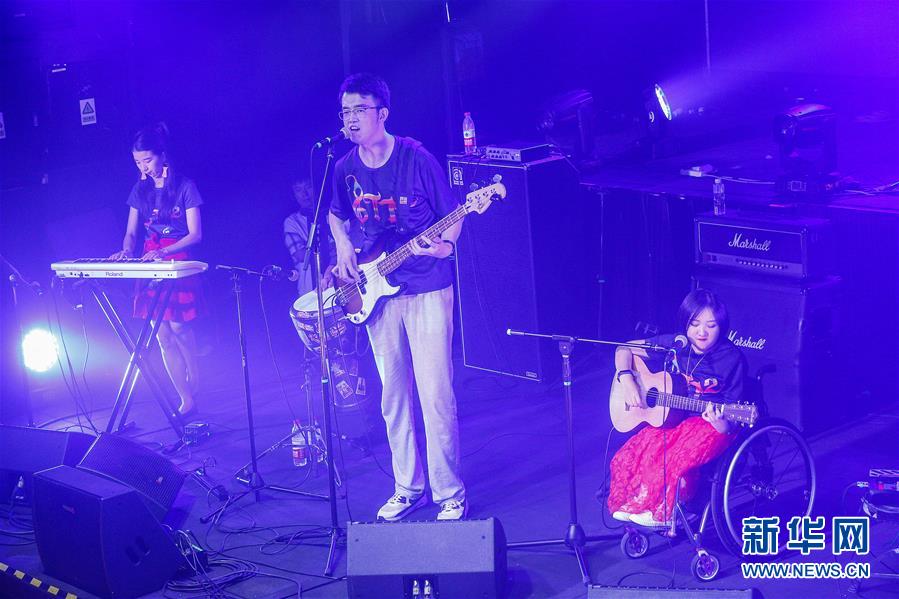 8月14日,8772樂隊發(fā)起人、隊長王奕鷗在演唱會上表演。新華社記者張玉薇攝