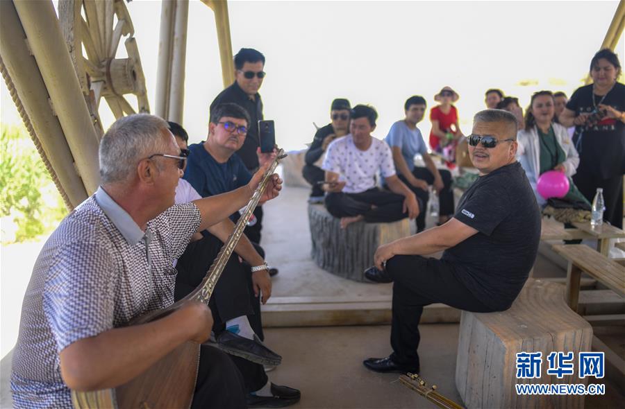 游客在羅布人村寨游玩(6月19日攝)。新華社記者 趙戈 攝