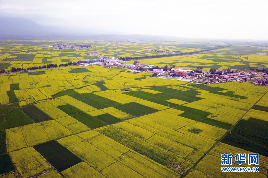 這是在甘肅省張掖市民樂縣扁都口生態(tài)休閑旅游區(qū)周邊田園拍攝的油菜花海(7月17日無人機拍攝)。新華社記者 范培珅 攝
